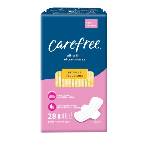 Carefree Ultra Thin Pads, Regular Pads With Wings, 28ct (Pack of 1)