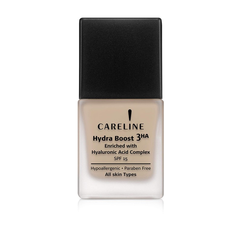 Careline is happy to introduce Hydra Boost Foundation with Hyaluronic Acid. With velvety texture, this make-up is enriched with moisturizing ingredients and soft pigments, providing full coverage and comfort. Featuring a unique technology, incorporating three sizes of Hyaluronic Acid (with different molecular weights), providing intense moisture level and volume, promoting skin flexibility and softness, preventing dryness and extending make-up durability - without causing dryness. Soft pigments adhere to skin, creating even coverage, diffusing light in 360° for a natural-looking glow. Hyaluronic Acid Hyaluronic Acid is naturally produced in the cell membranes. Other than maintaining skin moisture level, it serves as an important player in the intercellular connection, as a communication conductor in the process of cell distribution and regeneration. As a cosmetic ingredient, its role is to provide available moisture, which both hydrates and locks in water. It takes part in the tissue regeneration process and serves as an effective conductor for other complex ingredients. Hyaluronic Acid can absorb water 1,000 times more that its original weight; therefore it plays an important role in the process of smoothing dry fine lines and refining deep wrinkles by filling the wrinkle with moisture, from the bottom layer of the epidermis towards its upper layer. The Hyaluronic ingredient is composed of simple molecules that can easily penetrate the epidermis. The penetration capability is achieved by an exclusive formulation, including different ingredients and variable molecule sizes (300, 100 and 50 Dalton/KDa), providing broad coverage of moisture penetration into deep skin layers and long-term activity (24 hours or more)