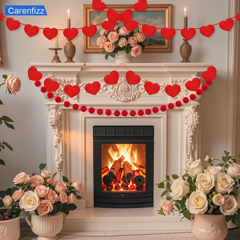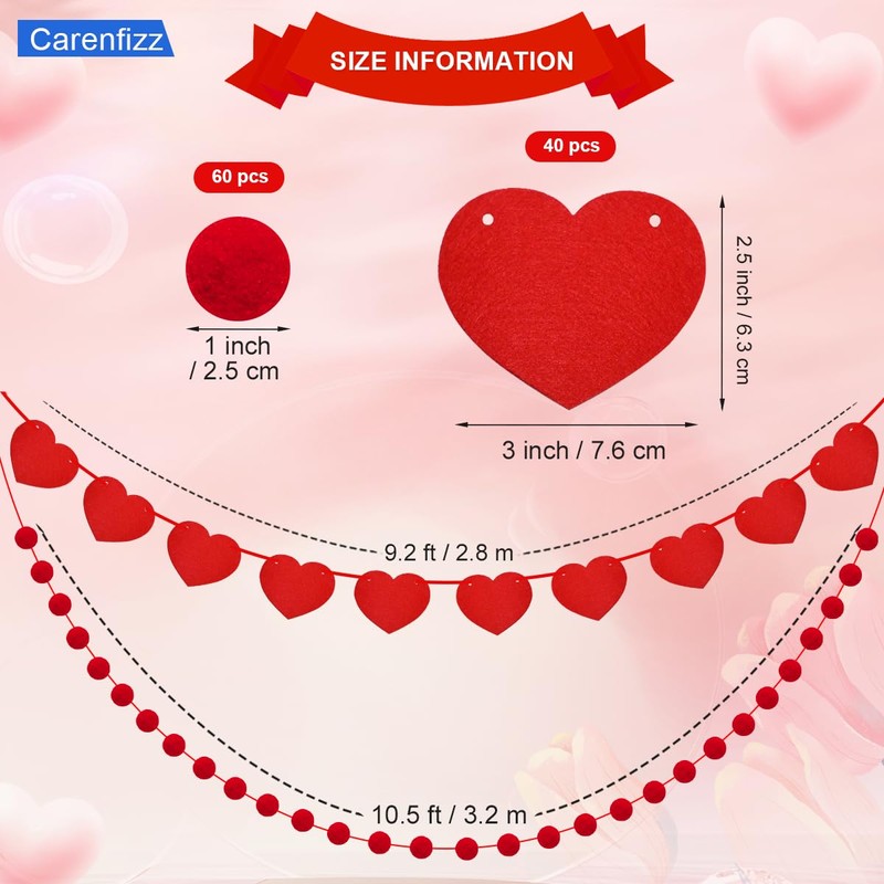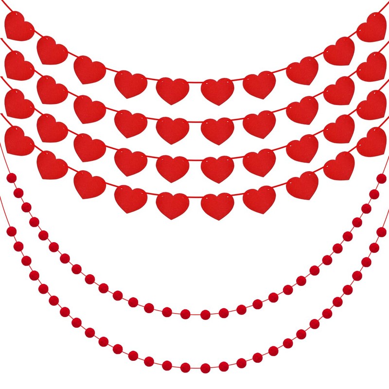 - Material: The valentines day garland crafted from resilient felt, it's tactile, light, effortless to hang, and its sleek all-red design is optimal for valentines day decor. It can be compactly folded for convenient storage and repeated use