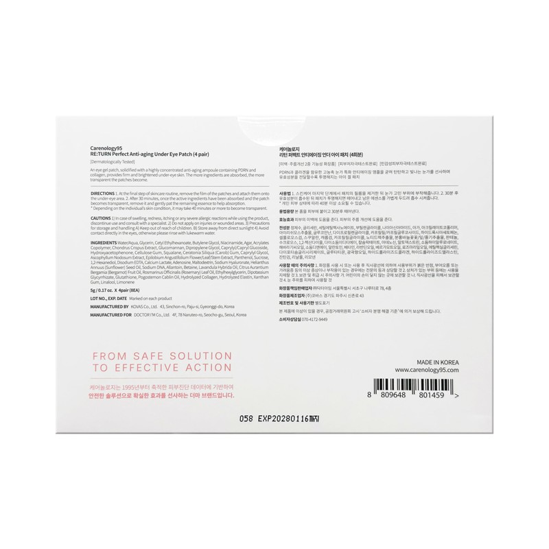 Carenology 95 RETURN Perfect Under Eye Patch 5g/0.17oz x 4 pair (8EA)