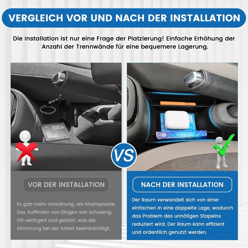 - Eine Praktische Lösung für die Aufbewahrung im Auto ---- mit dieser zentralen Aufbewahrungsbox können Sie das Durcheinander in Ihrem Auto leicht ordnen. Ohne die ursprüngliche Funktion der Mittelkonsole zu beeinträchtigen, wird der Stauraum maximal ausgenutzt. Sie können problemlos weitere Gegenstände wie Mobiltelefone, Geldbörsen, Sonnenbrillen, Kleingeld, Karten usw. unterbringen und aufbewahren. So sparen Sie Platz und sorgen für Ordnung in Ihrem Auto.