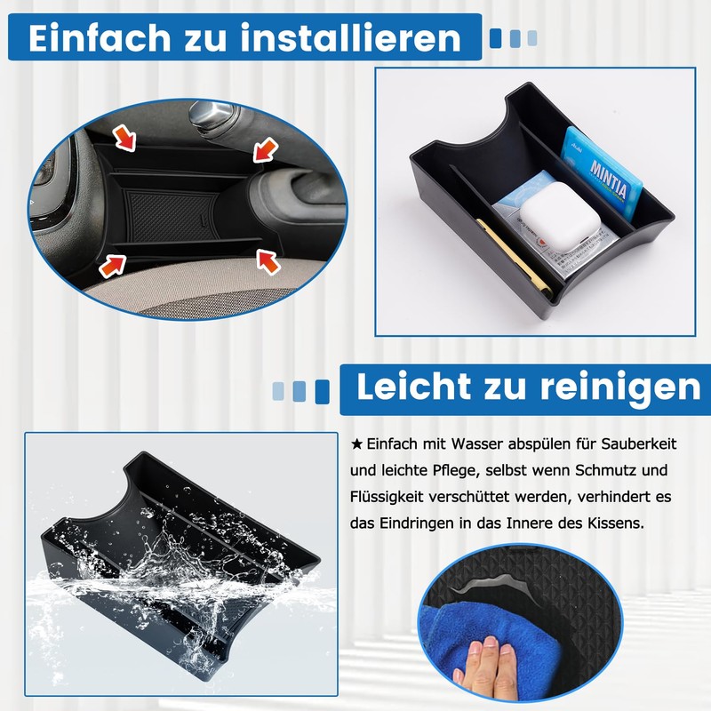 - Die Installation ist Ganz Einfach und Ohne Werkzeug ---- Platzieren Sie es einfach an der richtigen Stelle auf der Mittelkonsole und es bleibt dort, wo es ist. Es sind keine Werkzeuge erforderlich. Es passt perfekt zu verschiedenen Komponenten im Autoinneren und beeinträchtigt nicht andere Funktionen des Fahrzeugs. Zudem lässt es sich zum Reinigen leicht herausnehmen, wodurch der Innenraum aufgeräumt bleibt und Benutzerfreundlichkeit und Komfort verbessert werden.