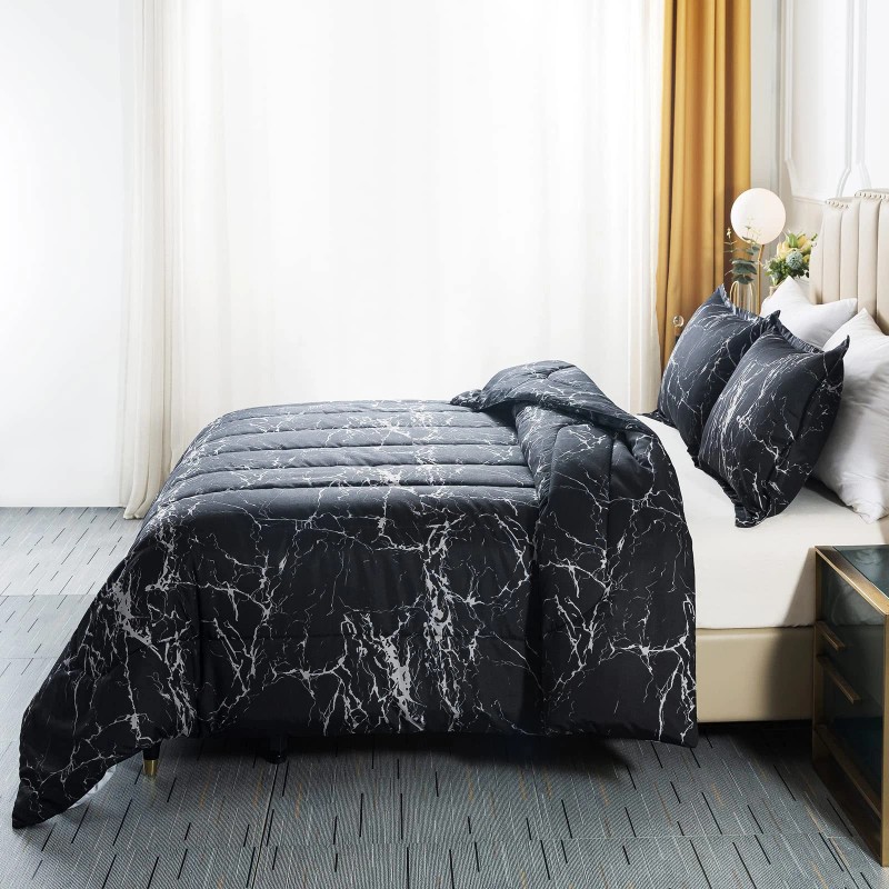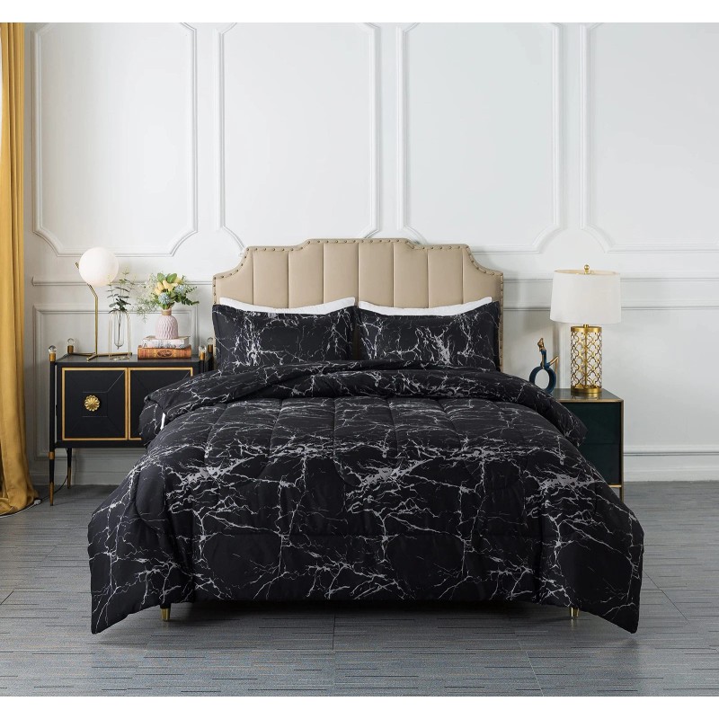 Caressma Black Marble Comforter Set Queen, 3 Pieces Modern Pattern Soft Microfiber Bed