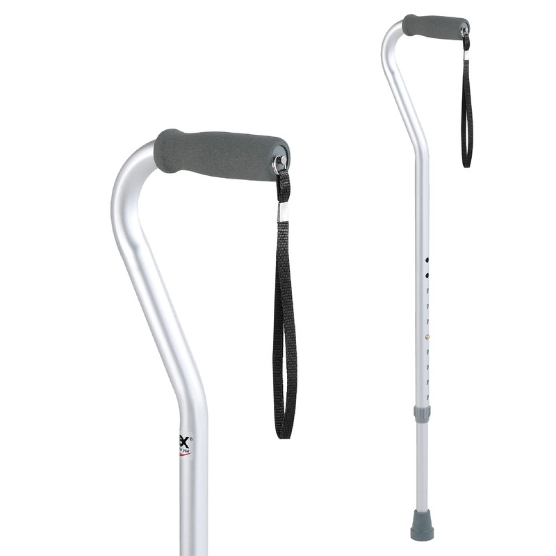 Carex Aluminum Offset Cane with Soft Cushioned Handle - Adjustable Walking Cane for Men and Women - Silver Color