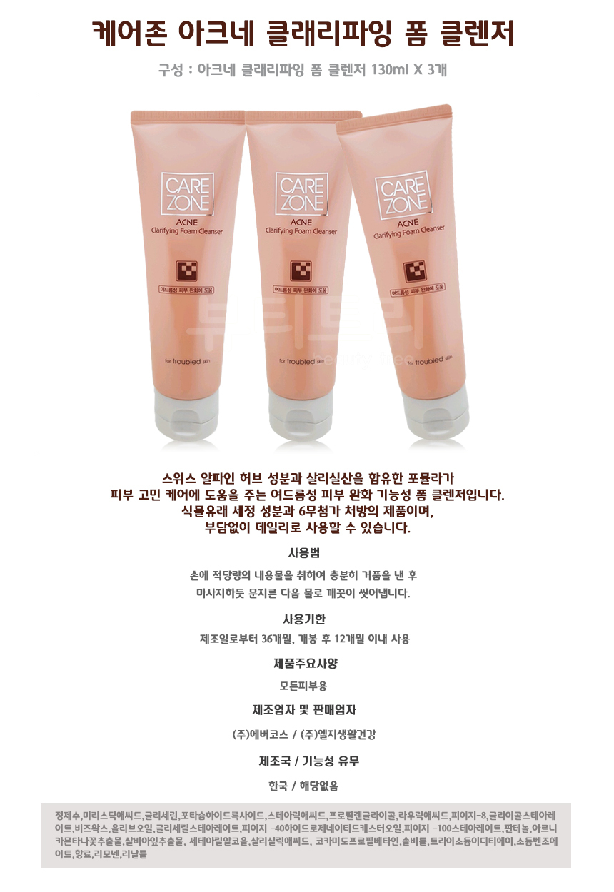 케어존 아크네 클래리파잉 폼 클렌저 130ml X 3개