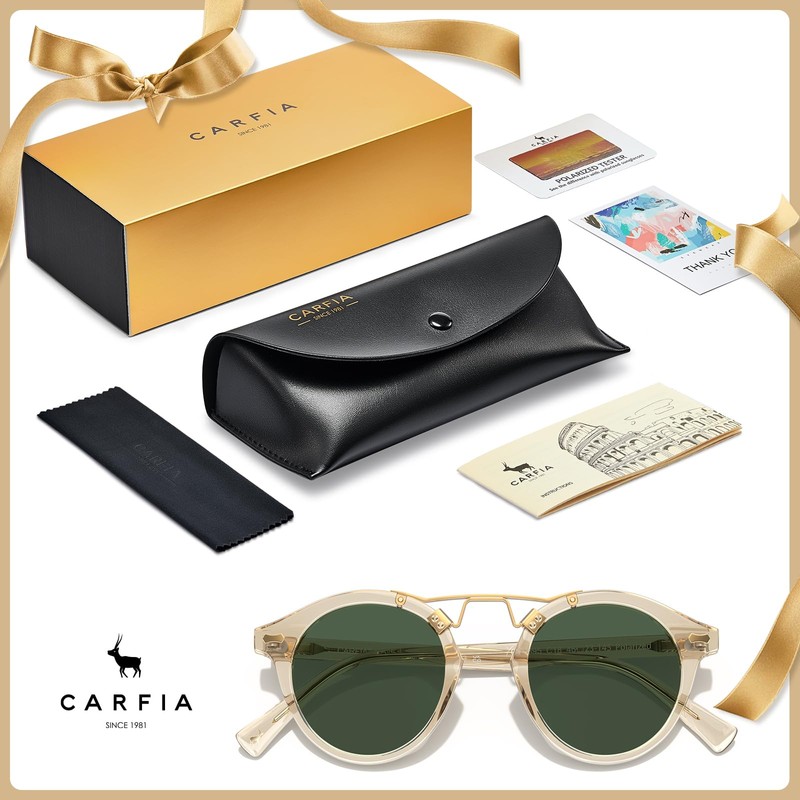 Carfia Small Clear Yellow Acetate Polarized Sunglasses for Women UV Protection, Retro Metal Double Bridge Eyewear Round Shade
