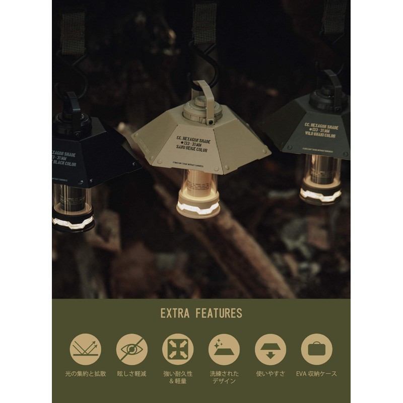 Cargo Container Hexagon Shade CARGO CONTAINER HEXAGON SHADE DUAL LIGHT OPTIONS CUSTOMIZED LANTANK SHADE HANGER CLAMP HANGING OUTDOOR CAMPING WITH CASE (SAND BEIGE)