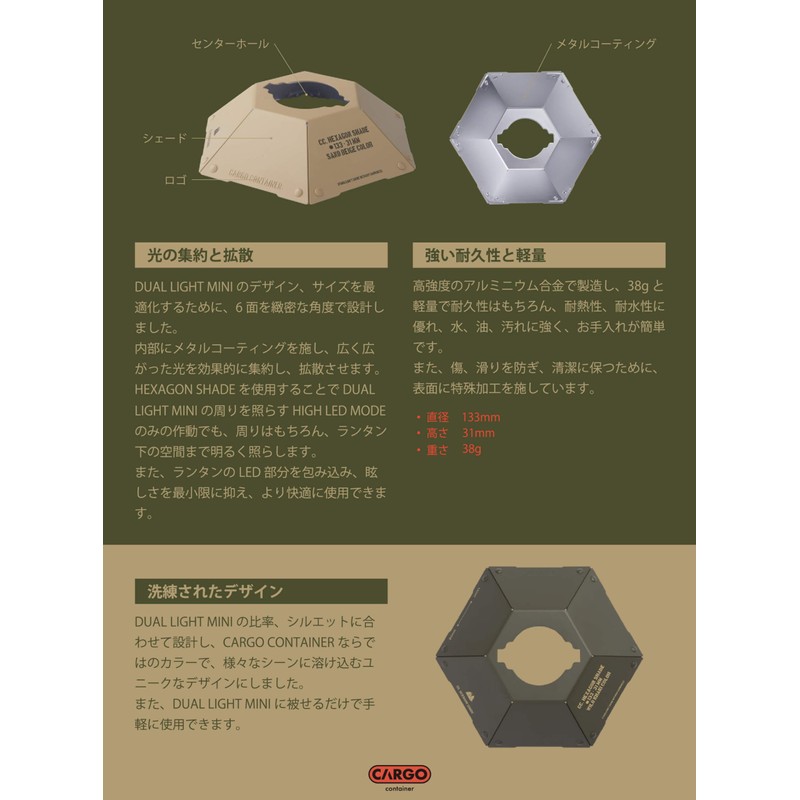 Cargo Container Hexagon Shade CARGO CONTAINER HEXAGON SHADE DUAL LIGHT OPTIONS CUSTOMIZED LANTANK SHADE HANGER CLAMP HANGING OUTDOOR CAMPING WITH CASE (SAND BEIGE)
