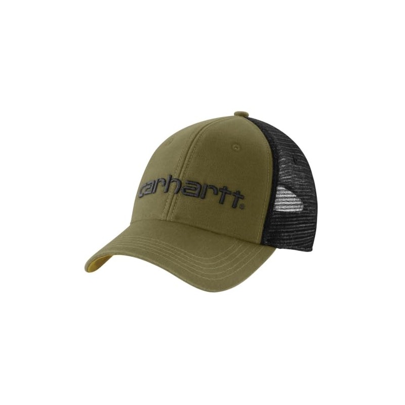 Carhartt Men's Canvas Mesh Back Logo Graphic Cap, Dark Bronze Green, Unit size
