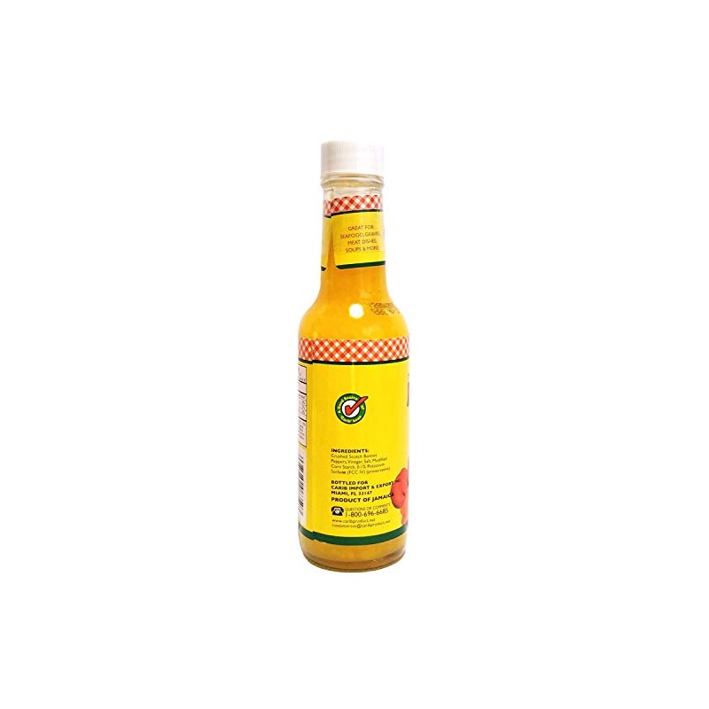 Enjoy a very hot and flavorful real Jamaican Crushed Yellow Scotch Bonnet Pepper Sauce from Carib. Add to meats, rice and peas, or any dish while cooking, or use as a daily condiment on your dining table.
