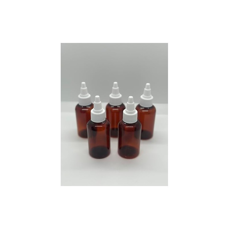 Caribbean Coastal Delights 2 oz Amber Plastic Boston Round Bottles with Twist Open/Close Cap, BPA-Free, Perfect for Essential Oils, Aromatherapy, and Beauty Blends - Travel Size (5 Pack)
