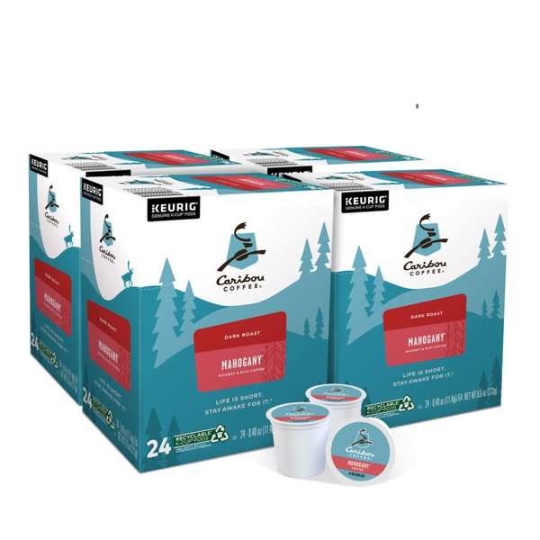Caribou Coffee Mahogany, Single-Serve Keurig K-Cup Pods, Dark Roast Coffee, 96 Count