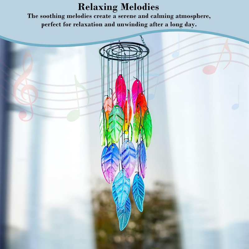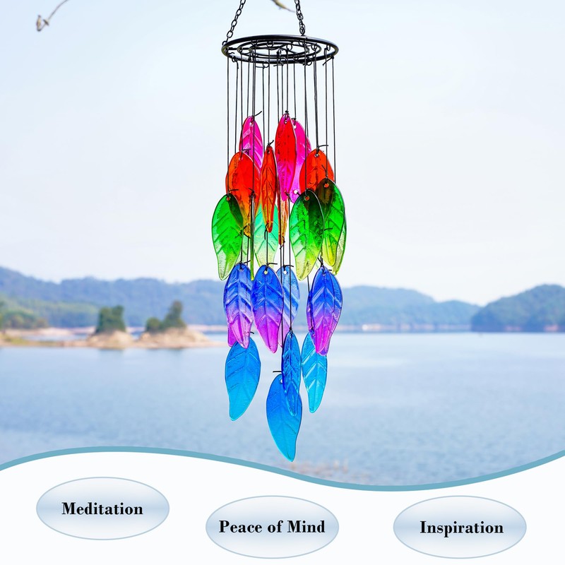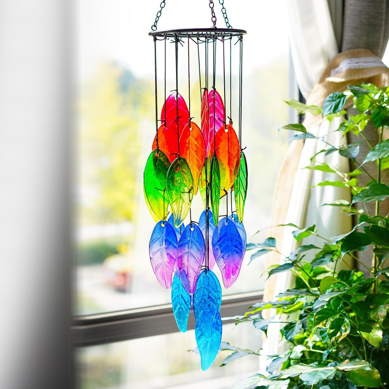 - Hojas de vidrio: adorna tu espacio al aire última intervensión con la encantadora belleza de las únicas campanillas de viento de hojas de arco iris. Las hojas de vidrio de colores crean una fascinante visualización de colores, añadiendo un toque de vitalidad a tu jardín o hogar.
