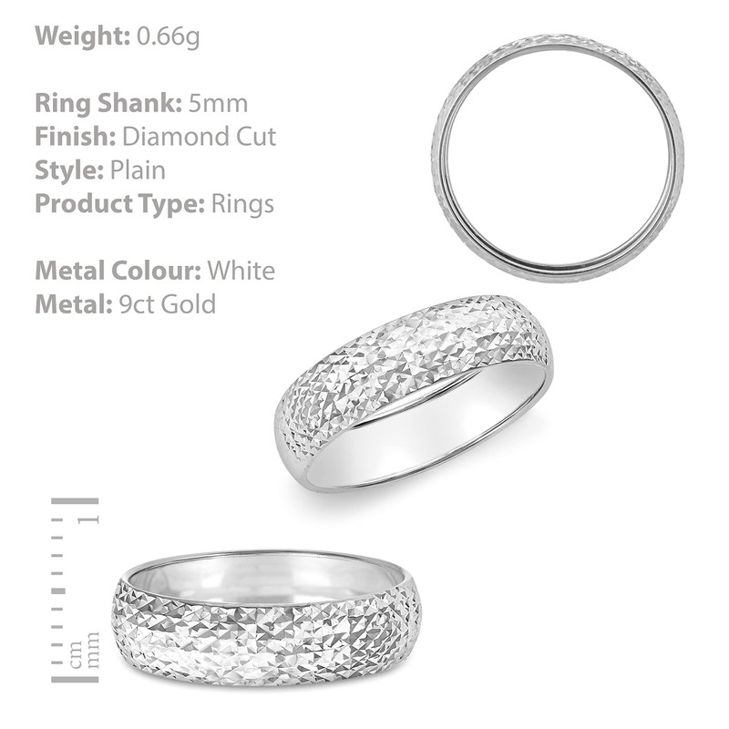 Carissima Gold 9ct White 5mm Diamond Cut Ring, L, Gold