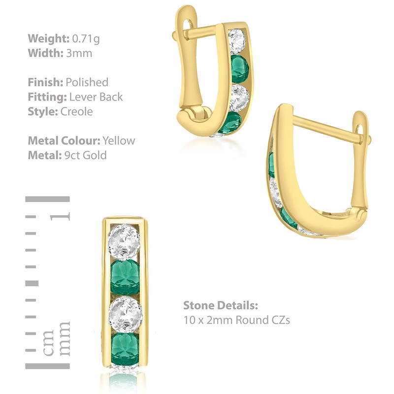 Carissima Gold Women's 9 ct Yellow Gold 10 x 2 mm White and Green Cubic Zirconia Half Hoop Earrings