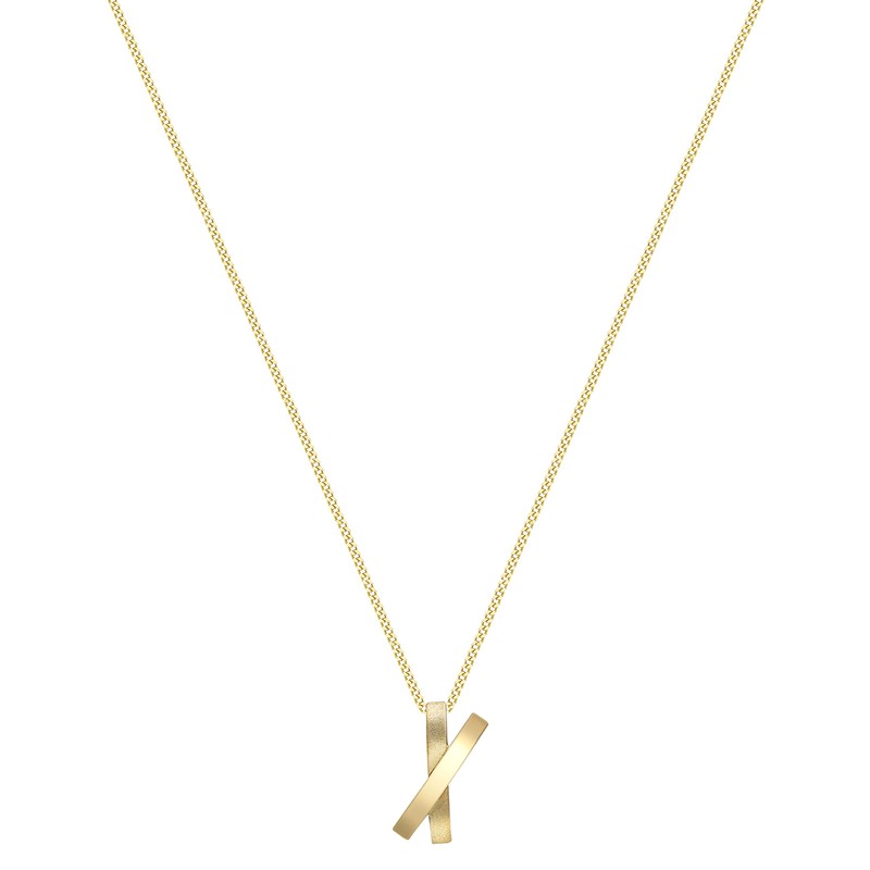 Carissima Gold Women's 9 ct Yellow Gold Satin and Polished Crossover Pendant on Curb Chain of Length 18 cm