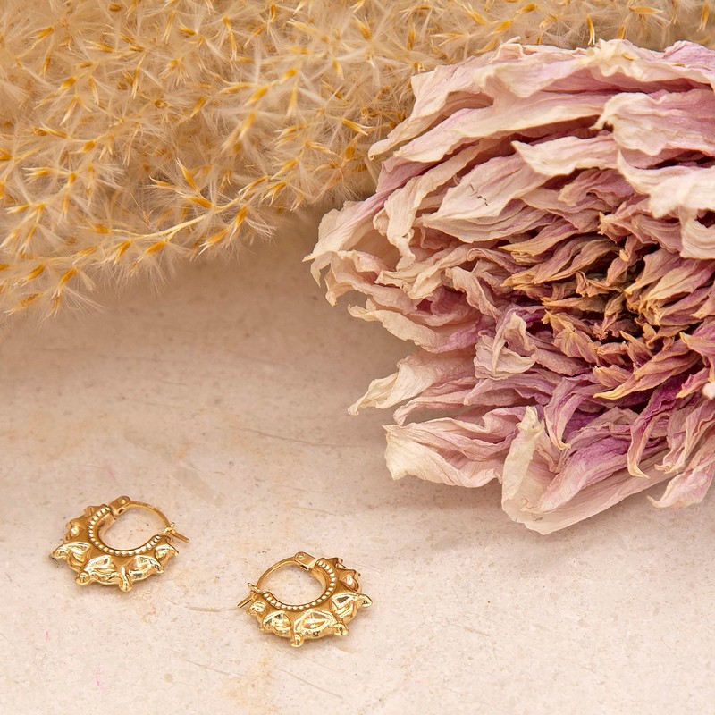 Carissima Gold Women's 9 ct Yellow Gold Star Patterned Creole Earrings of 14 x 17 mm