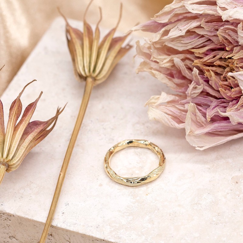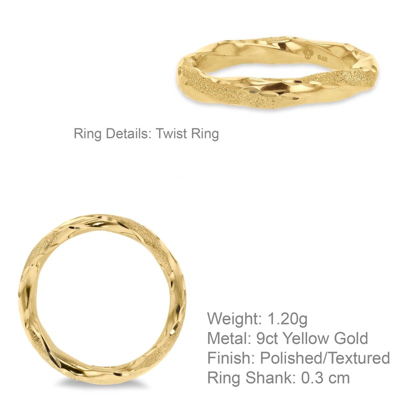 - THE FINER DETAILS: This is a 9ct Yellow Gold 3mm Polished and Textured Twist Ring - Size M