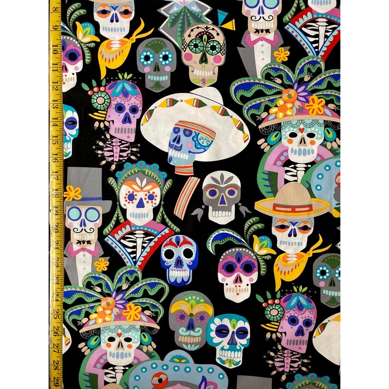 Carita Calaveras Black Alexander Henry Fabric - by Half Yard