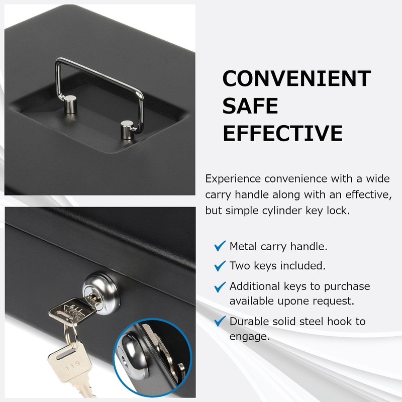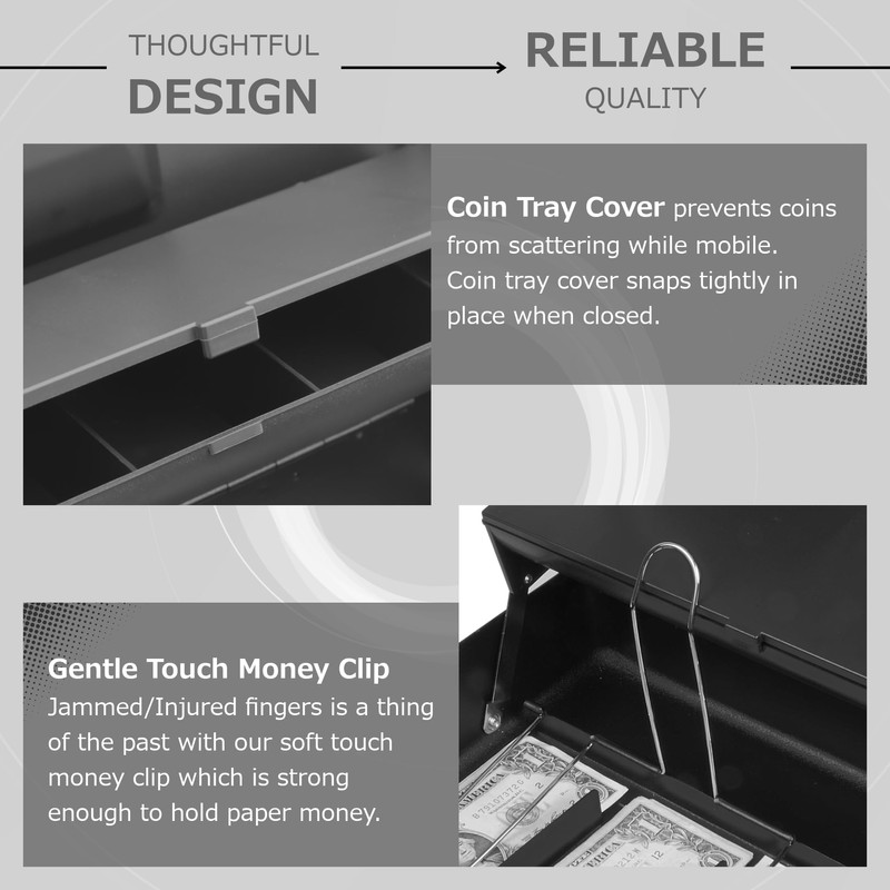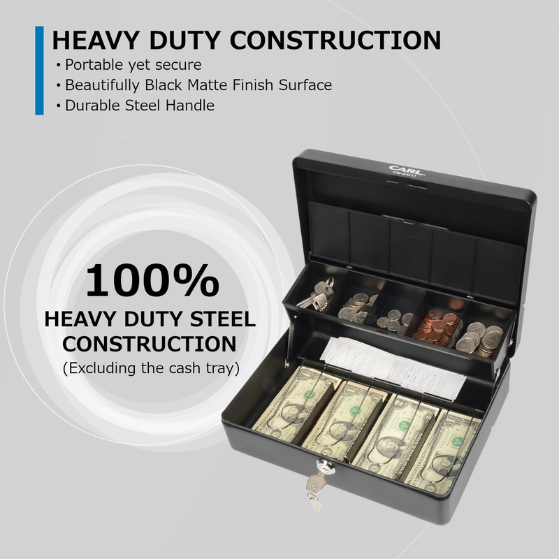 - Durable solid steel construction Cash Box to keep your dollar bills and coins safe.