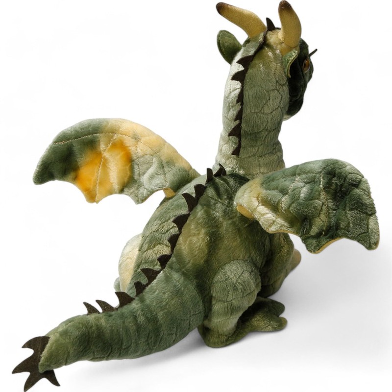 - The green, sitting plush dragon from the Carl Dick Collection impresses with its detailed design and bright colourway. Its upright sitting posture and the lovingly designed features make it a real eye-catcher. With a size of about 30 cm, it is an ideal cuddly toy for both children and collectors.