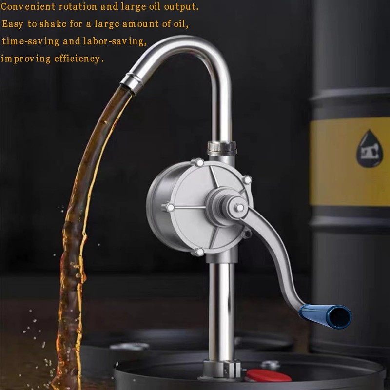 - 【High Efficient Hand Pump for 55 Gallon Drum】Our hand oil pump rotates clockwise to extract 8 gallons of oil per minute. In the same type of transfer pump, the suction force is large and the efficiency of oil extraction is excellent. Moreover, the pump core rotor made of composite plastic steel will not get stuck during use and rotates smoothly.