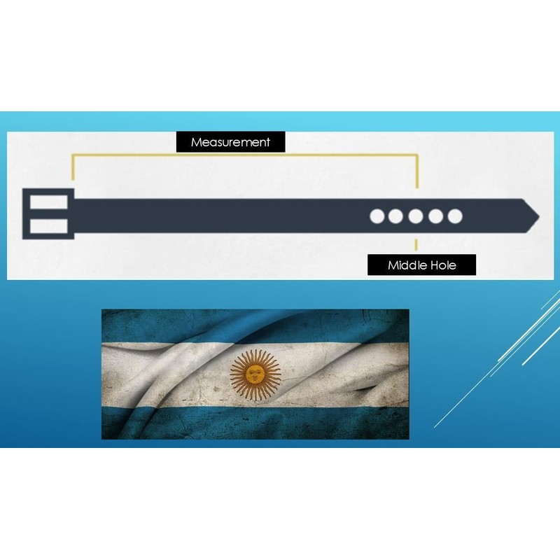All belts are measured from the start of the leather, not including the buckle, to the middle hole.