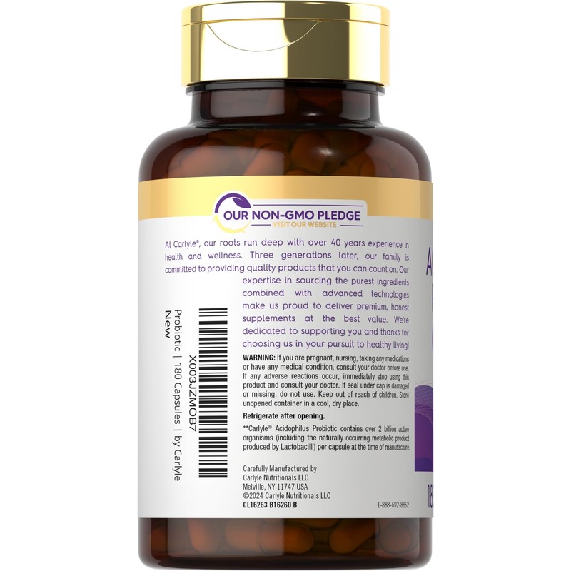 Carlyle Carlyle Acidophilus Probiotic for Women & Men's Digestive Health | 2 Billion CFU | 180 Quick Release Capsules | Non-GMO & Gluten Free