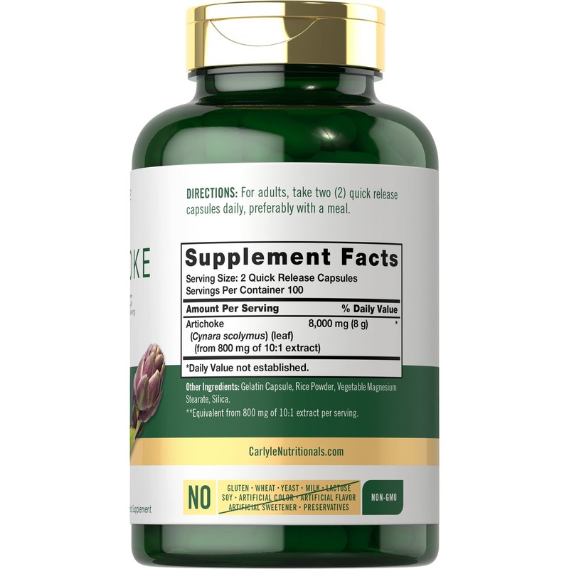 - LEAF EXTRACT: Provides the equivalent of 8,000 mg of Artichoke per serving in quick-release capsules