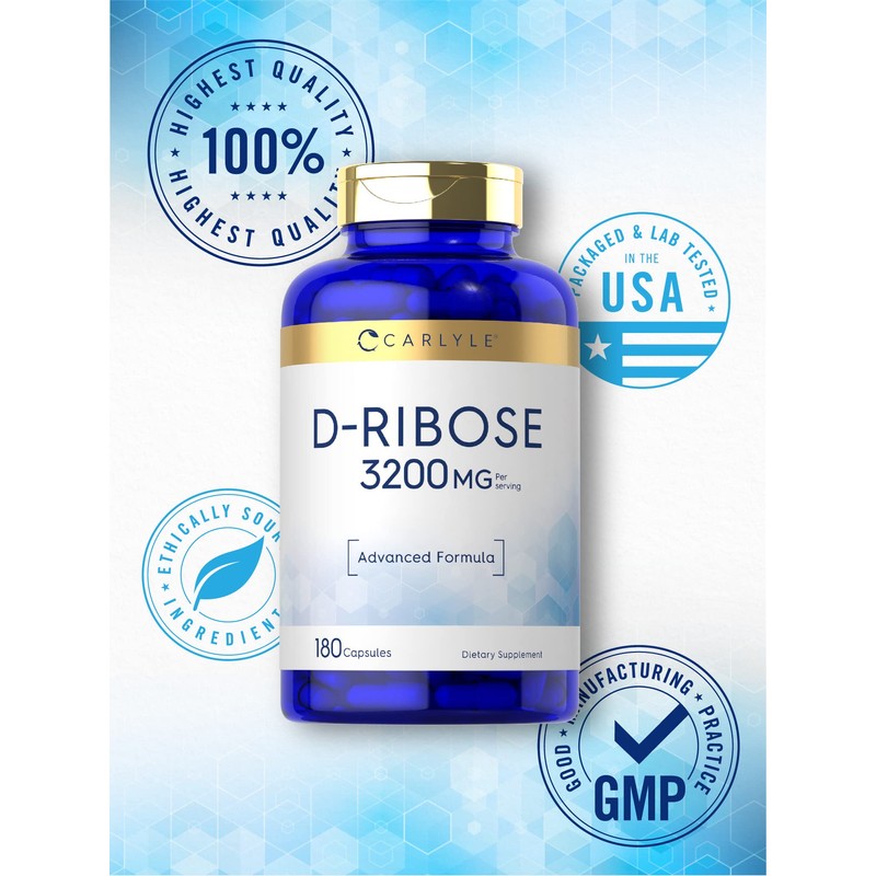 Carlyle Carlyle D-Ribose Capsules | 3200mg | 180 Pills | Advanced Formula | Non-GMO, Gluten Free Supplement