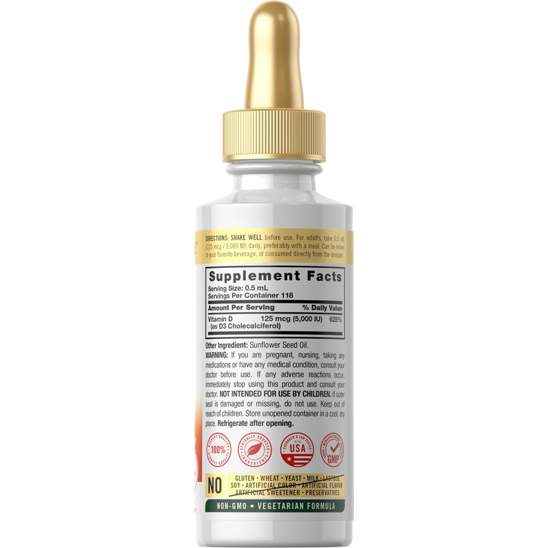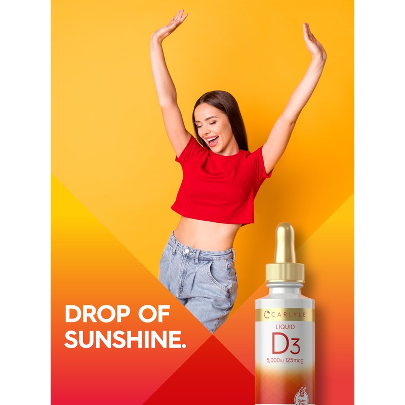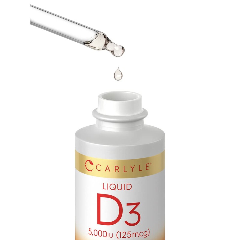 Carlyle Carlyle Liquid Vitamin D3 | 5000 IU (125 mcg) | 2 oz | Vegetarian, Non-GMO, and Gluten Free Supplement | Vitamin D Liquid Drops for Adults