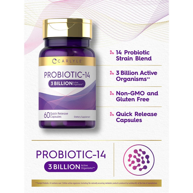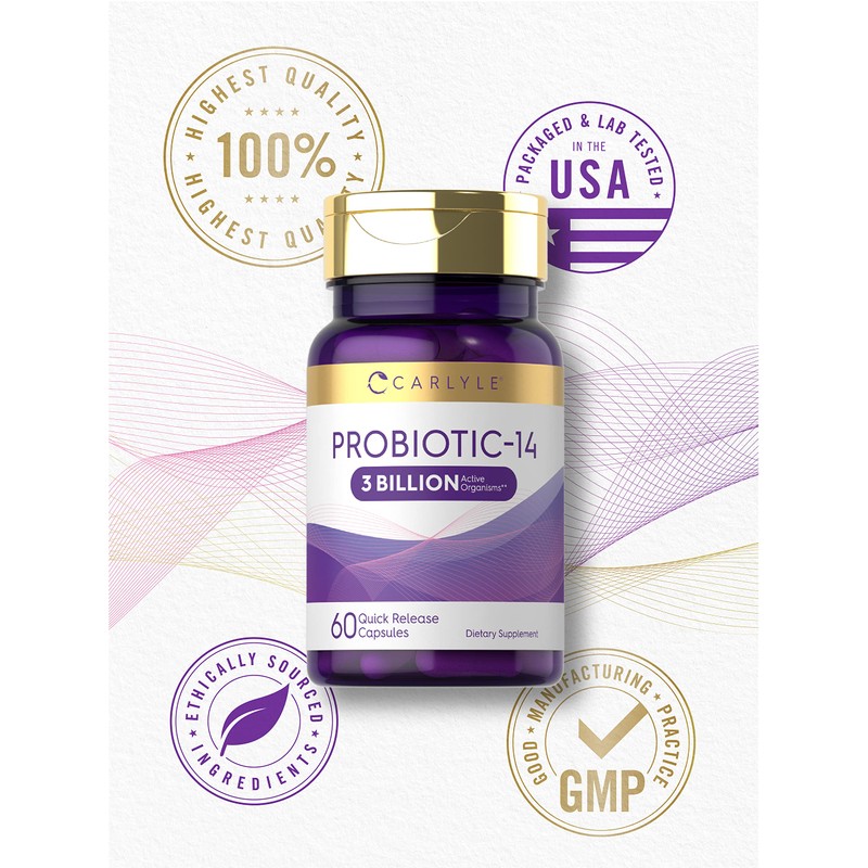 Carlyle Carlyle Probiotic for Women & Men | 3 Billion CFU | 60 Capsules | 14 Strains | Non-GMO & Gluten Free