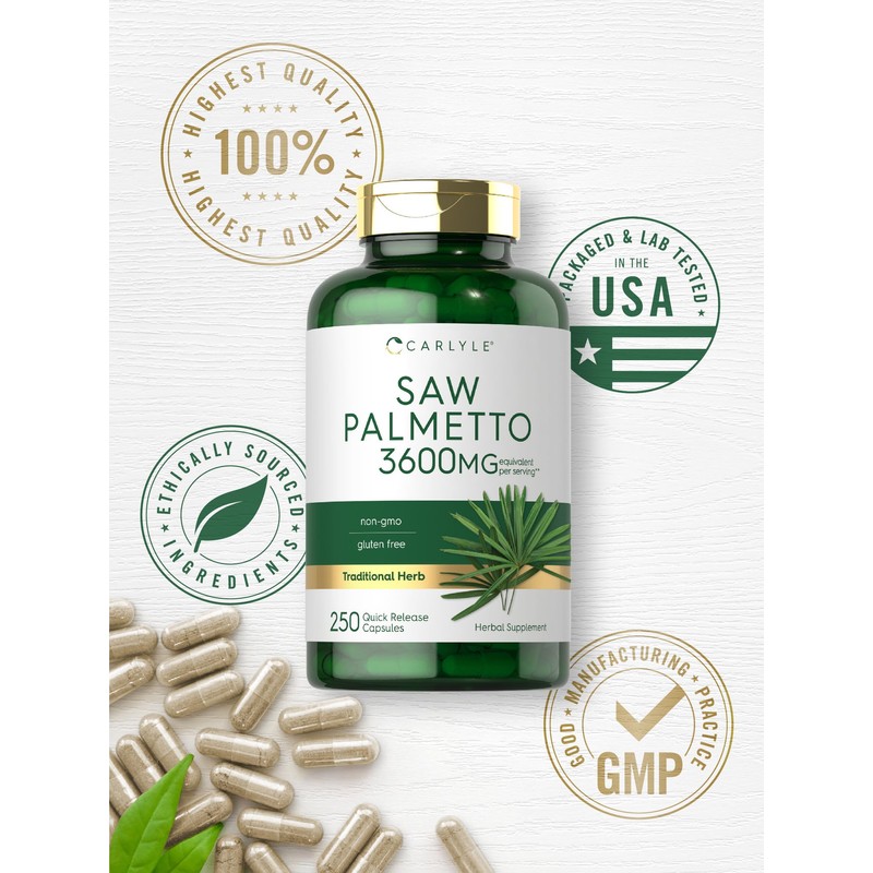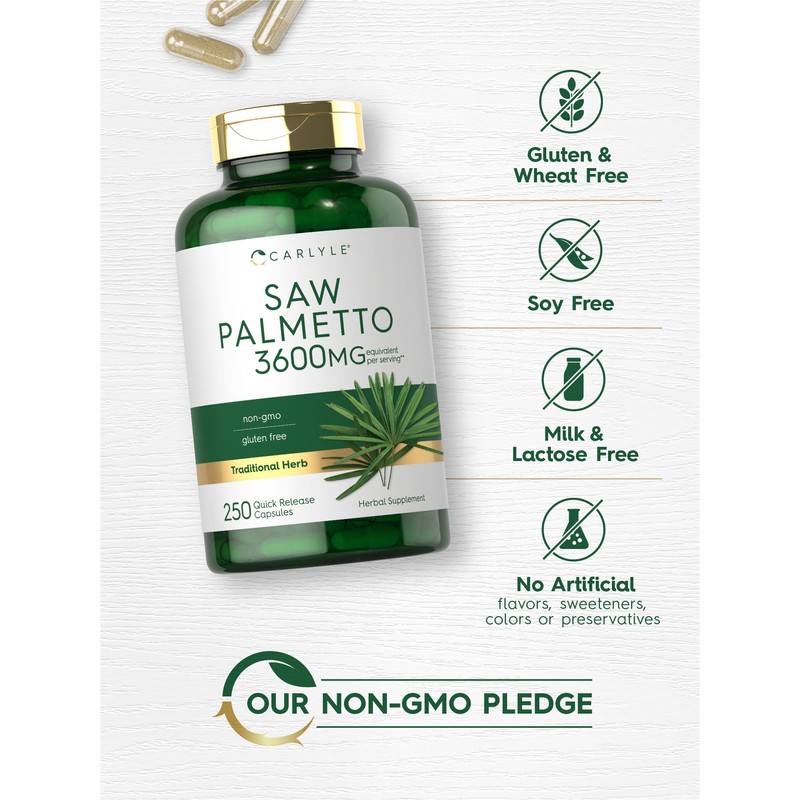 Carlyle Saw Palmetto for Men and Women | 3600 mg | 250 Capsules | Herb Extract Supplement | Serenoa Repens | Non-GMO and Gluten Free