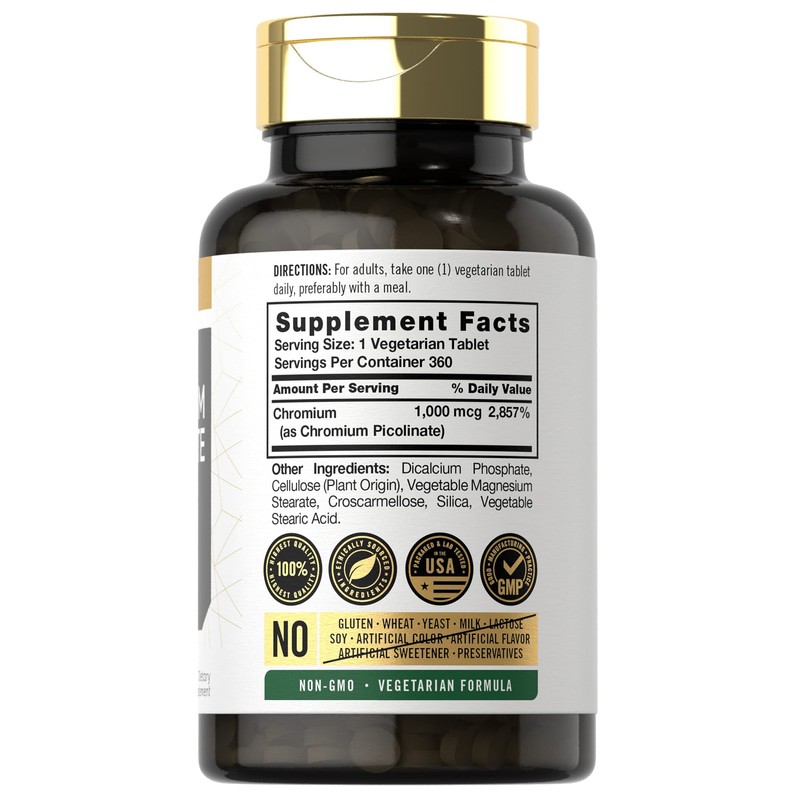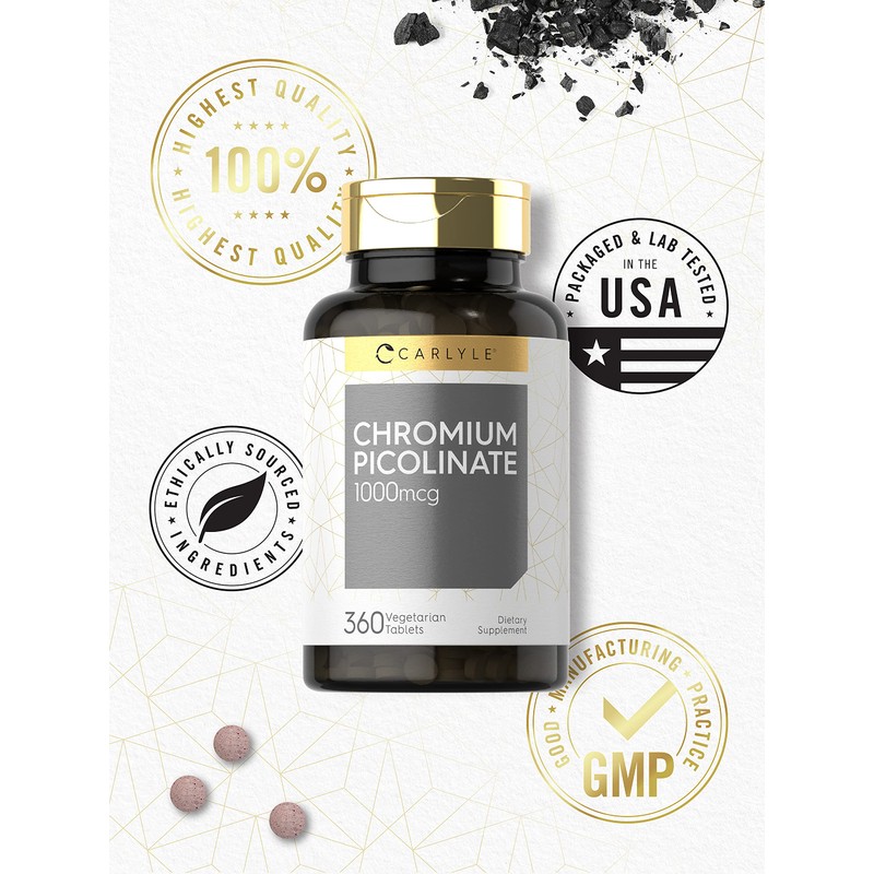 Carlyle Ultra Chromium Picolinate 1000mcg | 360 Tablets | Vegetarian, Non-GMO, Gluten Free