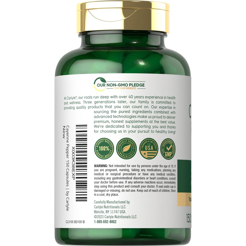 Our expertise in sourcing the purest ingredients combined with advanced technologies makes us proud to deliver premium, honest supplements at the best value. Carlyle Cayenne Pepper is a testament to our commitment to excellence, made with powerful ingredients rooted in wellness. Thanks for choosing us in your pursuit of living healthy.