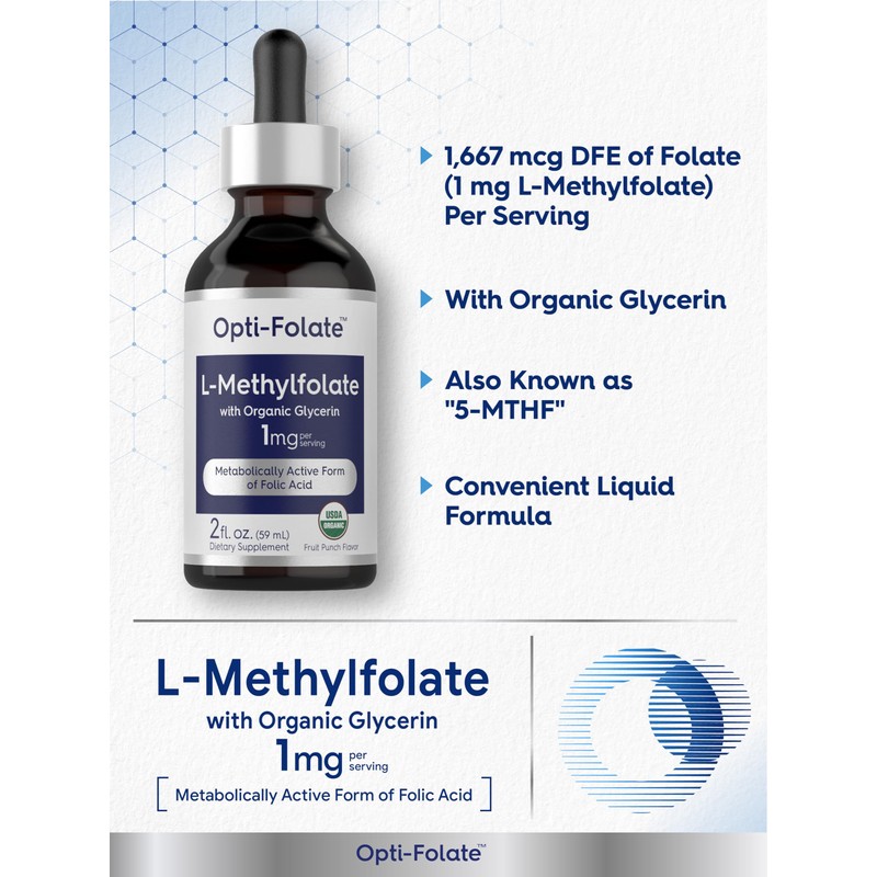Carlyle L-Methylfolate Drops 1mg | 2 Fl Oz | with Organic Glycerin | Liquid Sublingual Supplement | Fruit Punch Flavor | Vegetarian, Non-GMO