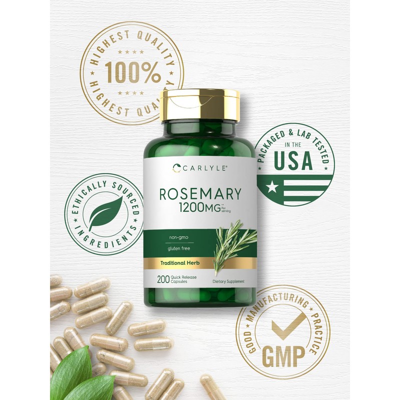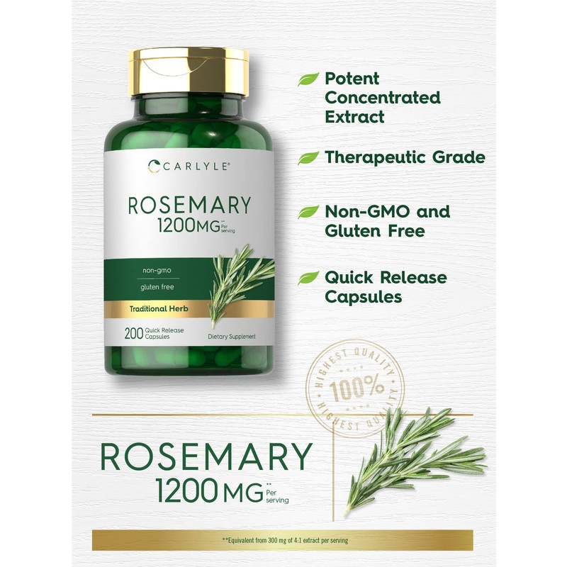 Carlyle Rosemary Capsules | 1200mg | 200 Count | Non-GMO & Gluten Free Extract