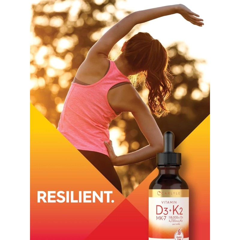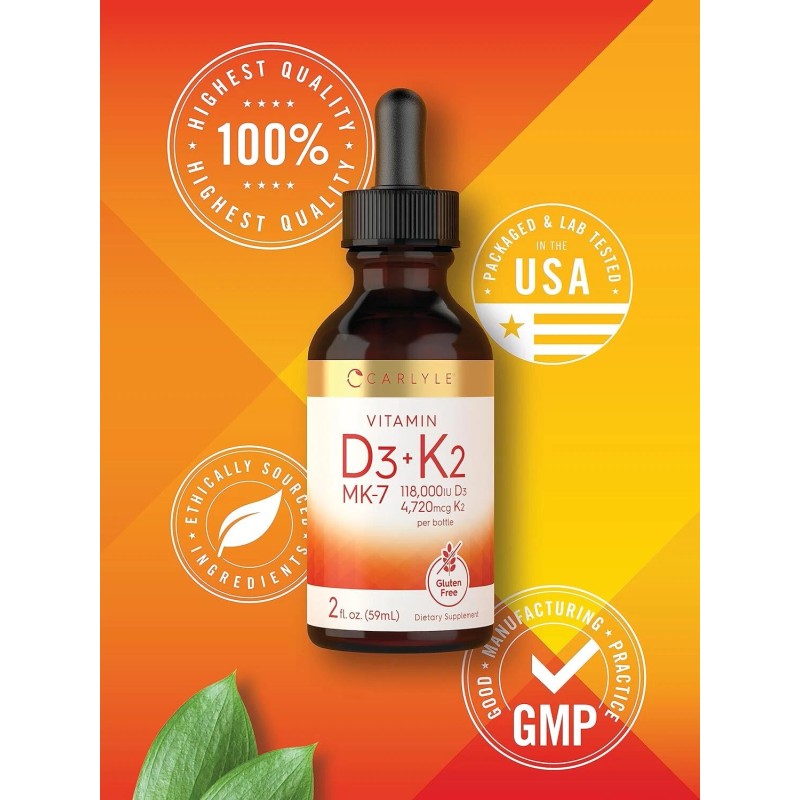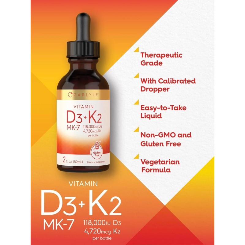 Carlyle Vitamin K2 D3 Liquid Drops 2 Fl Oz High Absorption Vegetarian Formula