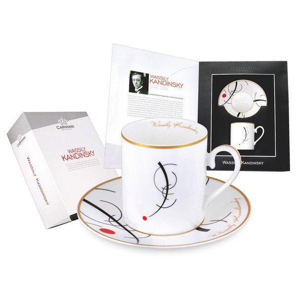 - The mug is made of high-quality white porcelain richly decorated with abstract colours and shapes patterns. The fine bone china bowl has the image printed by Kandinsky's one of the famous paintings. Best choice to give an art lover friend.