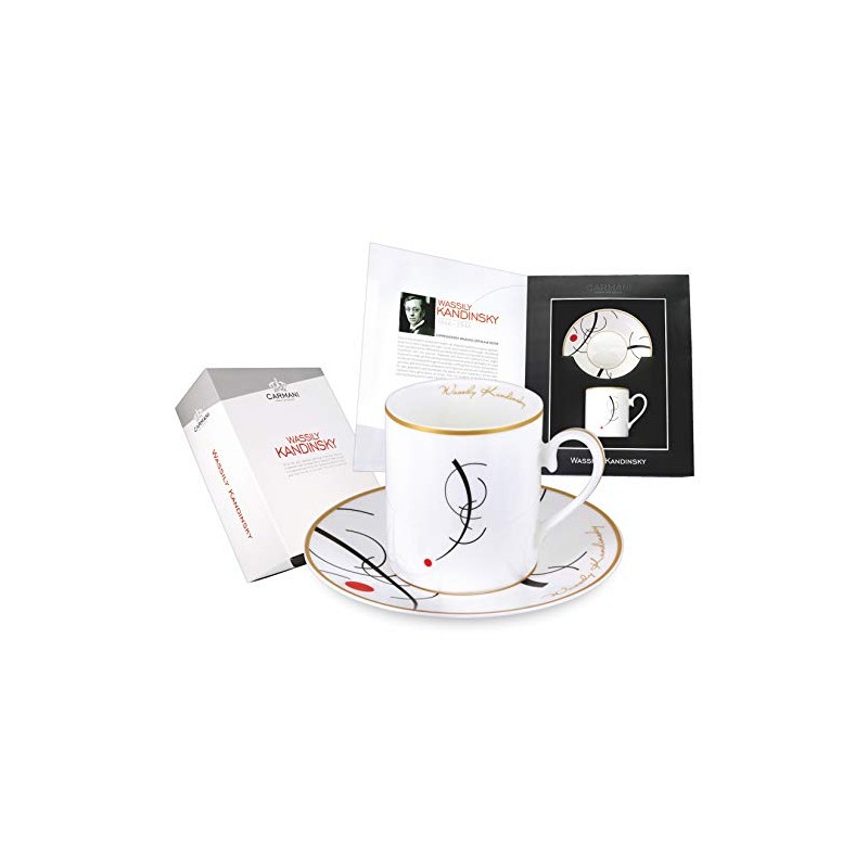 CARMANI - Tea Cup and Saucer, Fine Bone China, with Wassily Kandinsky Free Curve to the Point 250 ml
