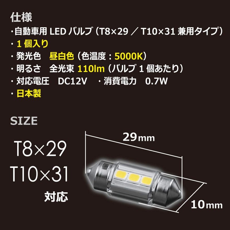 Carmate BW254 GIGA Car LED Room Lamp, Natural White Light, T8 x 29, T10 x 31, 5,000K, 110 lm, Pack of 1