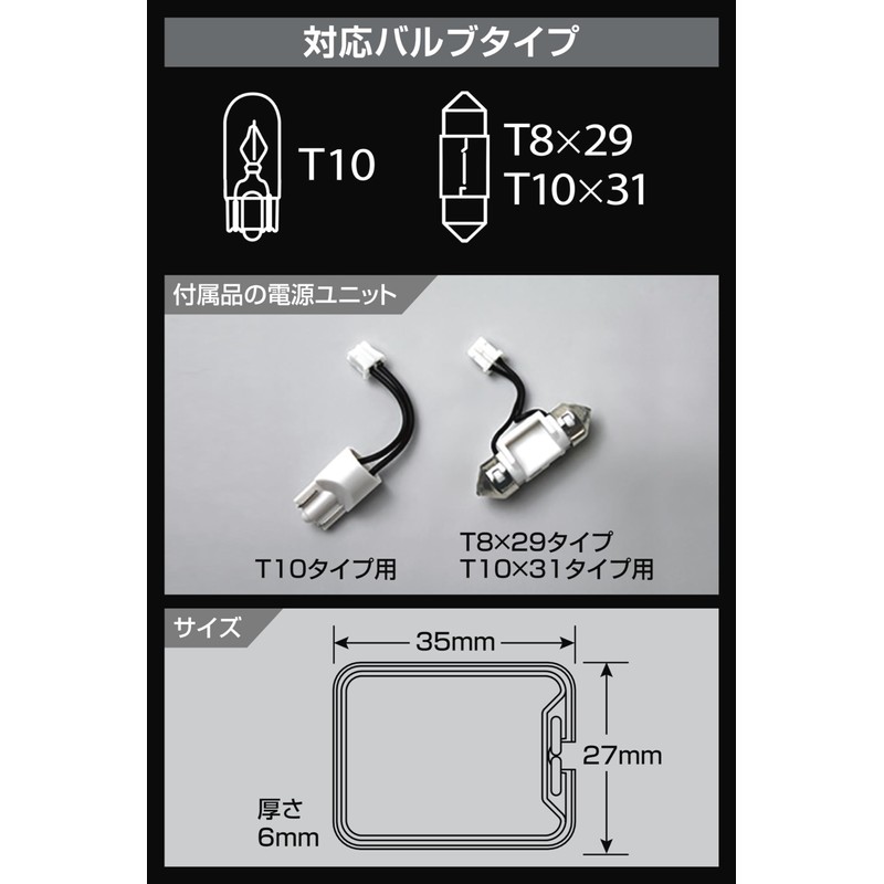 - Compatible with 3 valve types: Includes adapter to fit 3 types of base T10, T8 x 29, T10 x 31. It can be attached to many light fixtures (*) Please be sure to check compatibility information with our company