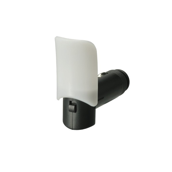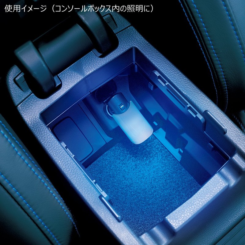 - This LED lamp can be used with 12 V accessory sockets (cigarette lighter socket), such as an in-panel, console box, or trunk room. The shade reduces glare and emits a gentle blue light. Shade cannot be turned on or off. On/off switch included