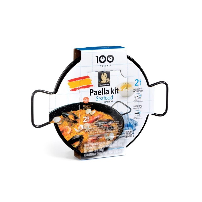 - Carmencita. Seafood Paella Kit with Saffron. Includes Enameled Pan. 2 servings. 255g (8.99oz).