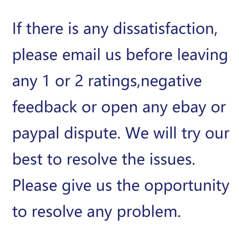 If you are not satisfied with any part of our service we please contact us to allow us correct the problem, prior to leaving your feedback. Please send us a message through eBay and let us know how we can earn your 5 stars!