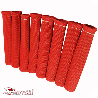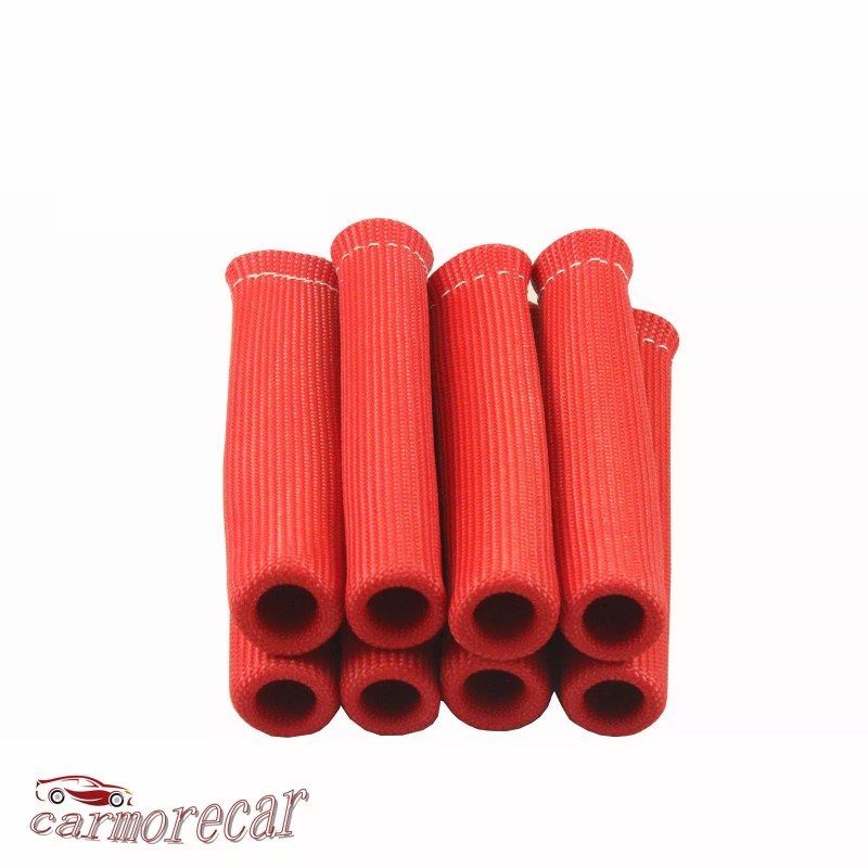 carmorecar2017 SBC BBC Red 1200° Spark Plug Wire Boots Heat Shield Protector Sleeve 8pcs