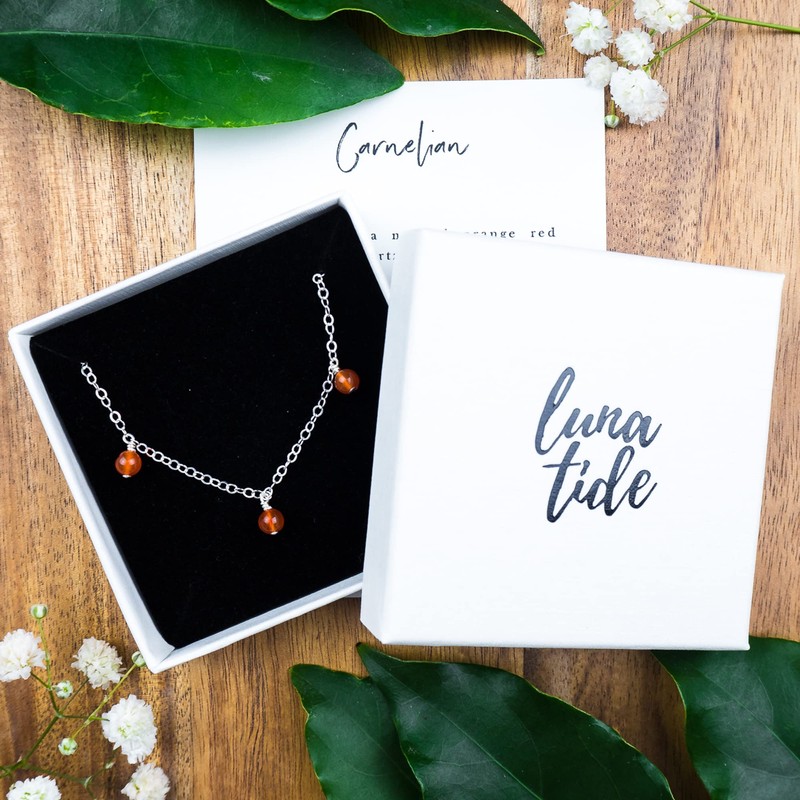 Your jewellery has been designed and handmade with love using genuine gemstones and crystals. It is packaged in a beautiful jewellery gift box along with a fact card telling you all about the crystal and its meaning. Crystals have inclusions, which appear naturally in gemstones. Sometimes they can be accidentally mistaken as cracks, but they're actually minerals that have been trapped within the crystal as it has grown. Inclusions are perfectly natural and make each individual crystal unique. They're part of the crystal's natural beauty and history.