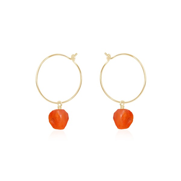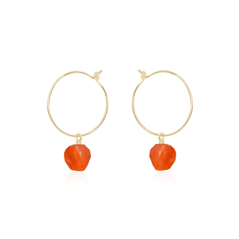 Carnelian Raw Nugget Hoop Earrings in 14k Gold Fill