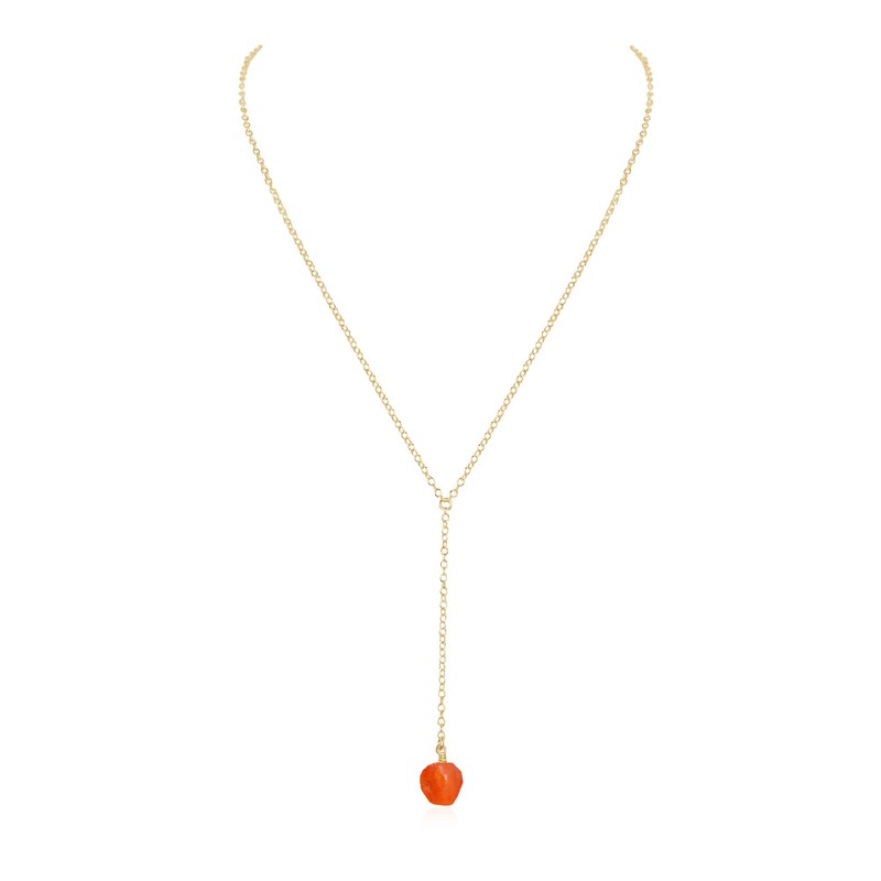 Carnelian Raw Nugget Lariat in 14k Gold Fill