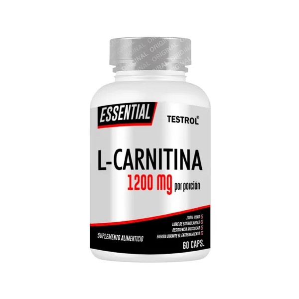 Carnitina 1200 Mg | Testrol | Essential | 60 Caps. Sin sabor.
